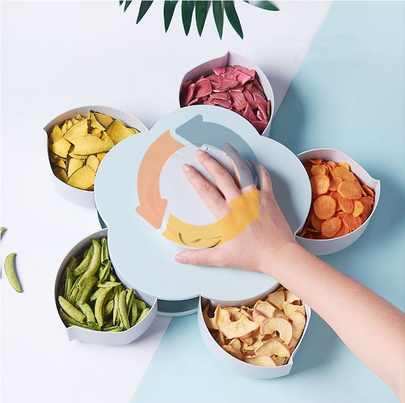 – Xoay như hoa, năm ngăn, có thể được đóng gói với đồ ăn nhẹ, hoa quả khô, vv
