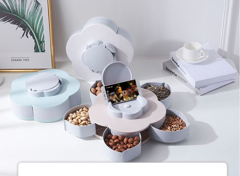 Đặc điểm nổi bật khay mứt xoay hình cánh hoa kèm giá đỡ điện thoại